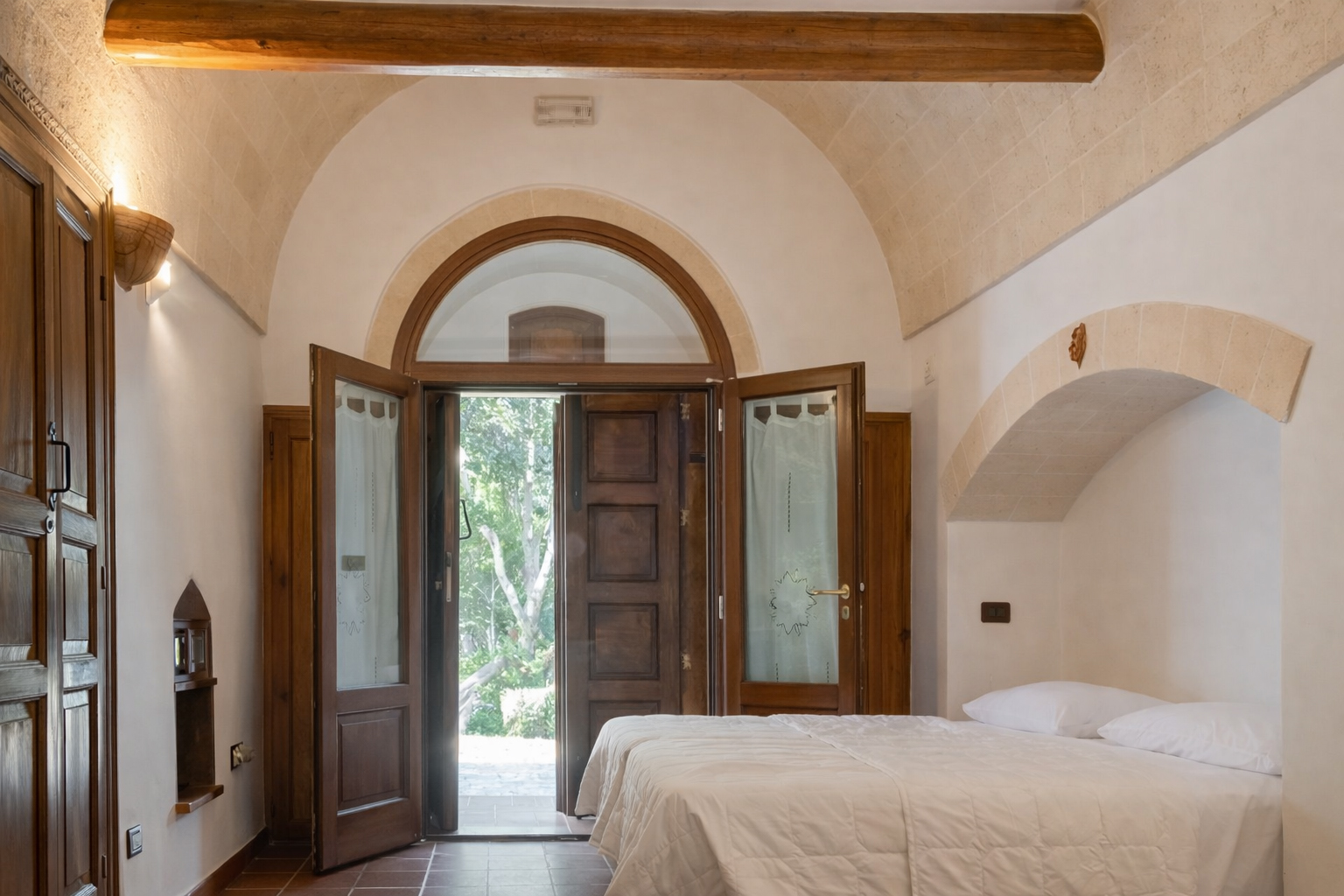 La Superior Family Suite, circondata da ulivi secolari e dotata di ogni comfort, coniuga perfettamente eleganza, design e rusticità delle tradizioni Pugliesi. Le nostre stanze erano originariamente abitate in parte dai contadini della masseria ed in parte dagli animali, i quali vivevano accanto ad essi per essere meglio protetti dai bracconieri.